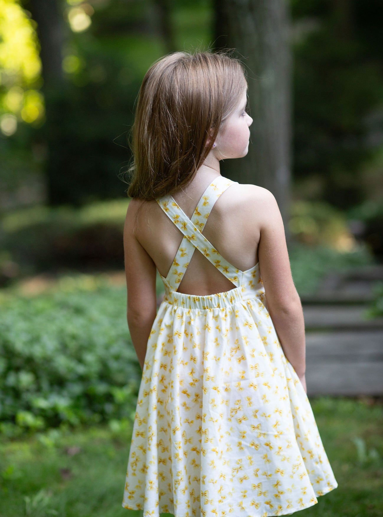 Our newest design is a woven pinafore style dress with cross back straps, and the twirl we all love.  Combined with our Bow Tie Pasta print, this is sure to be a summer favorite! AND it has pockets!
