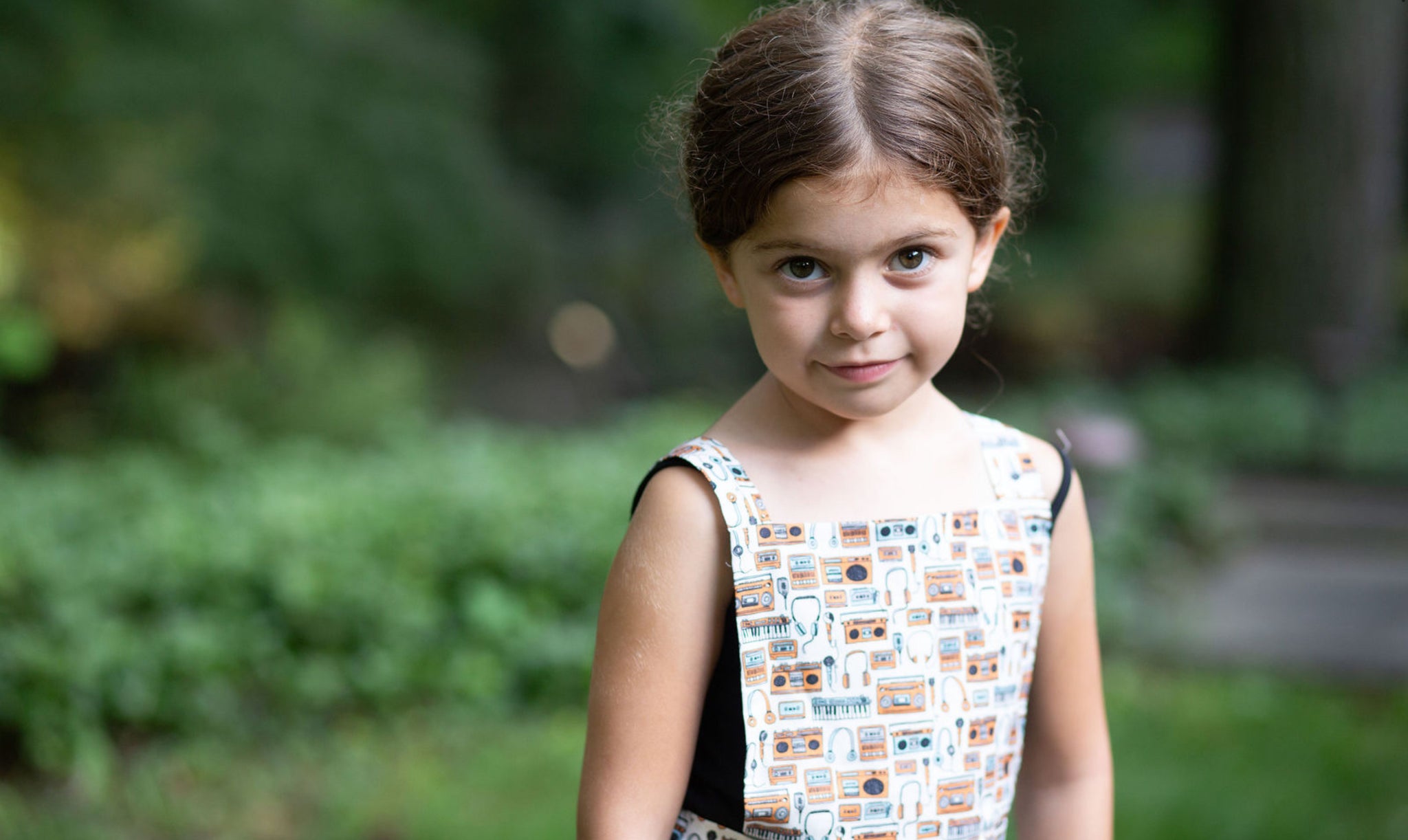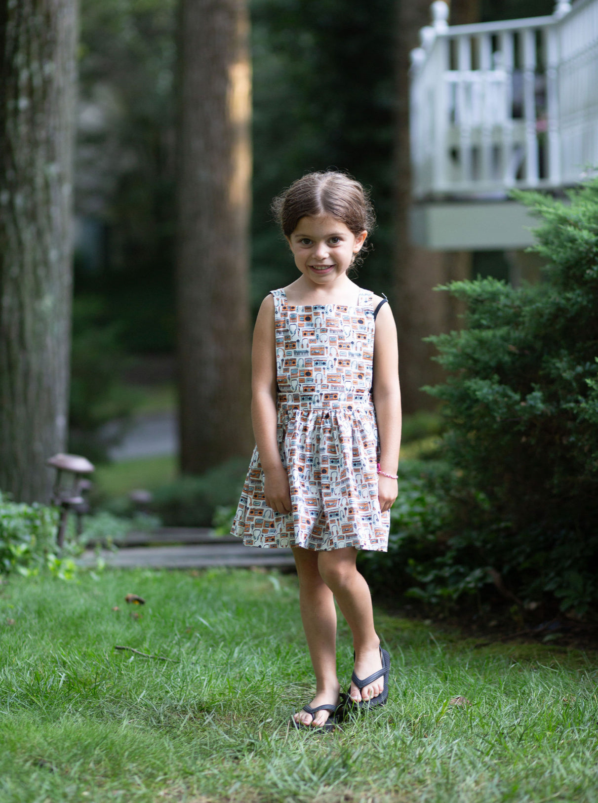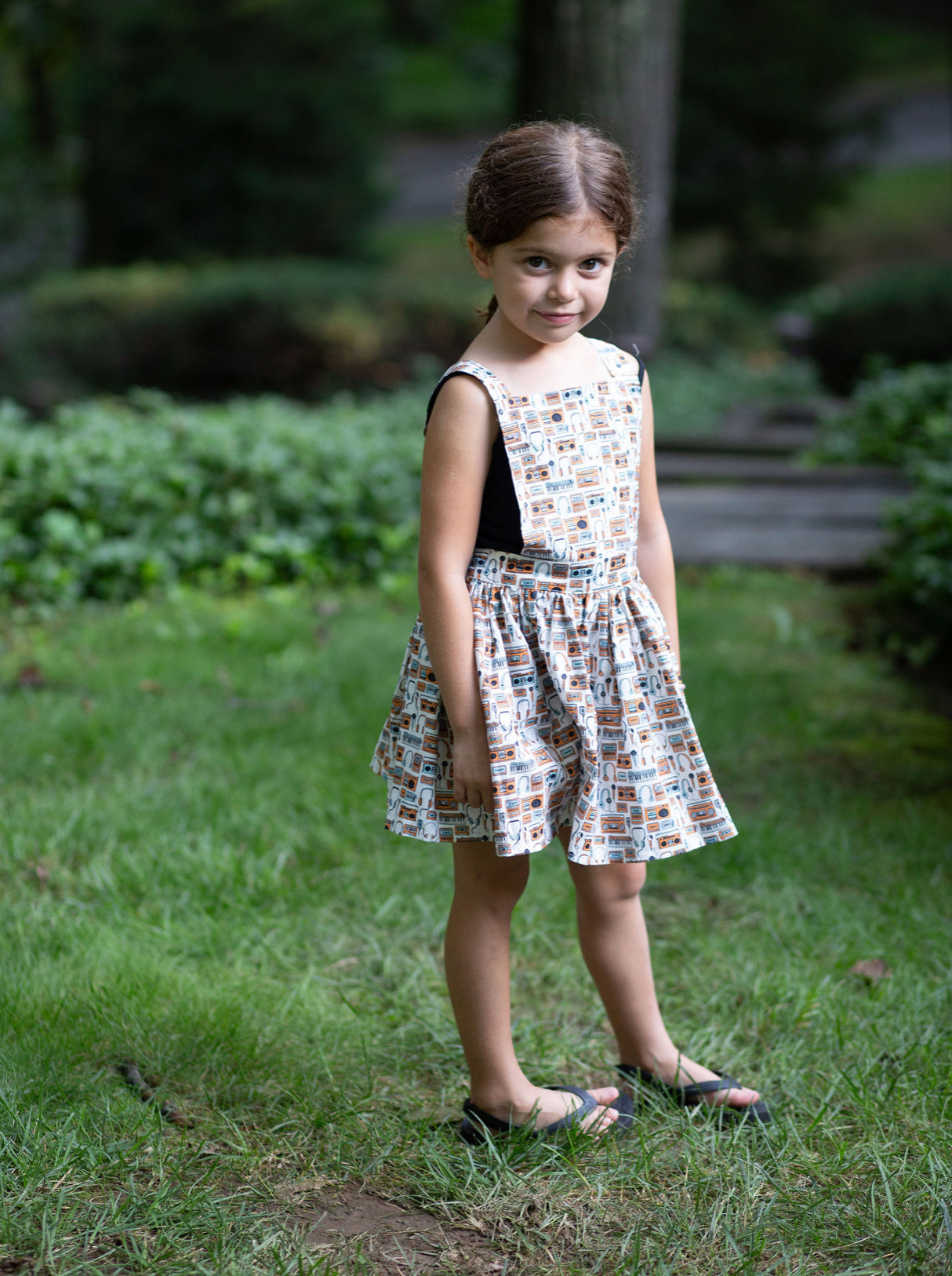 Our signature style in a new funky print - Boombox/Headsphones! The girls pinafore dress is a year round staple that will keep your little one fashionable, comfortable, and picture ready
