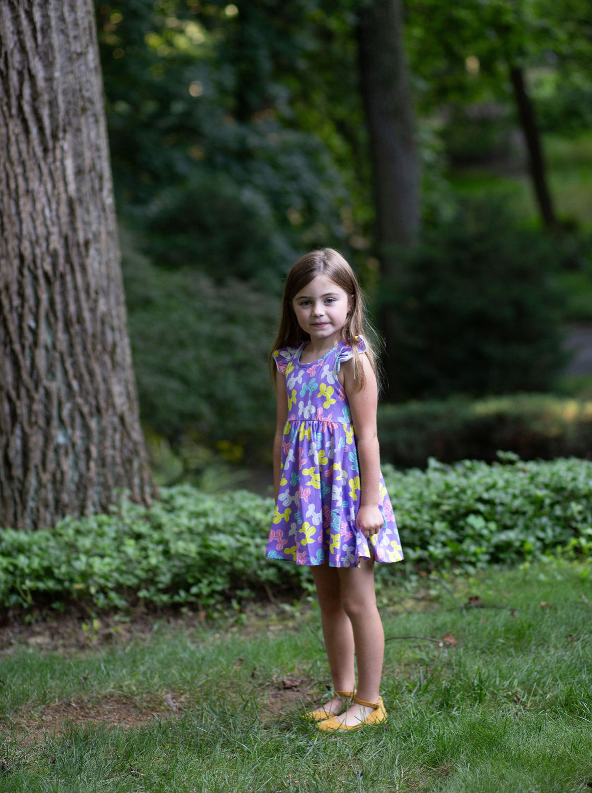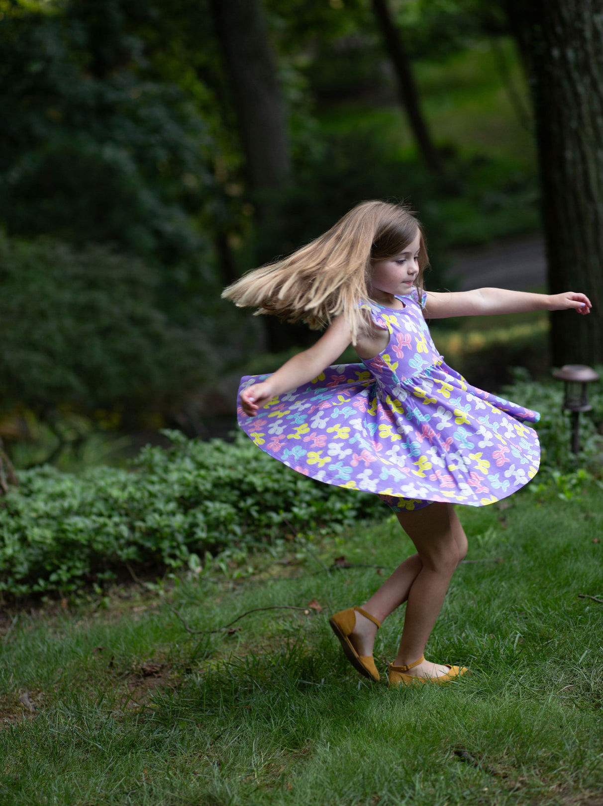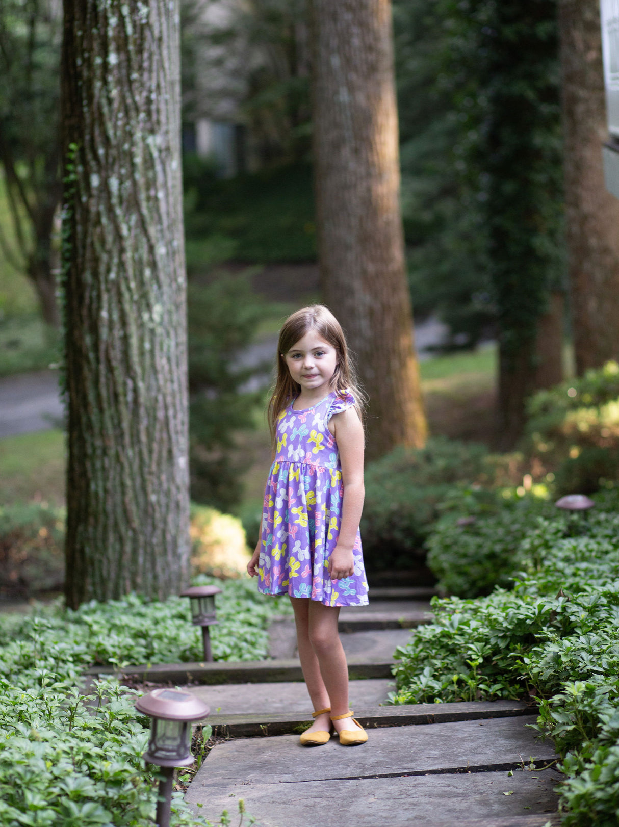 One of our favorite designs is a knit racer back dress with ruffle sleeves and the twirl we all love.  Combined with our fun Balloon Animal print, this is sure to be a summer favorite!