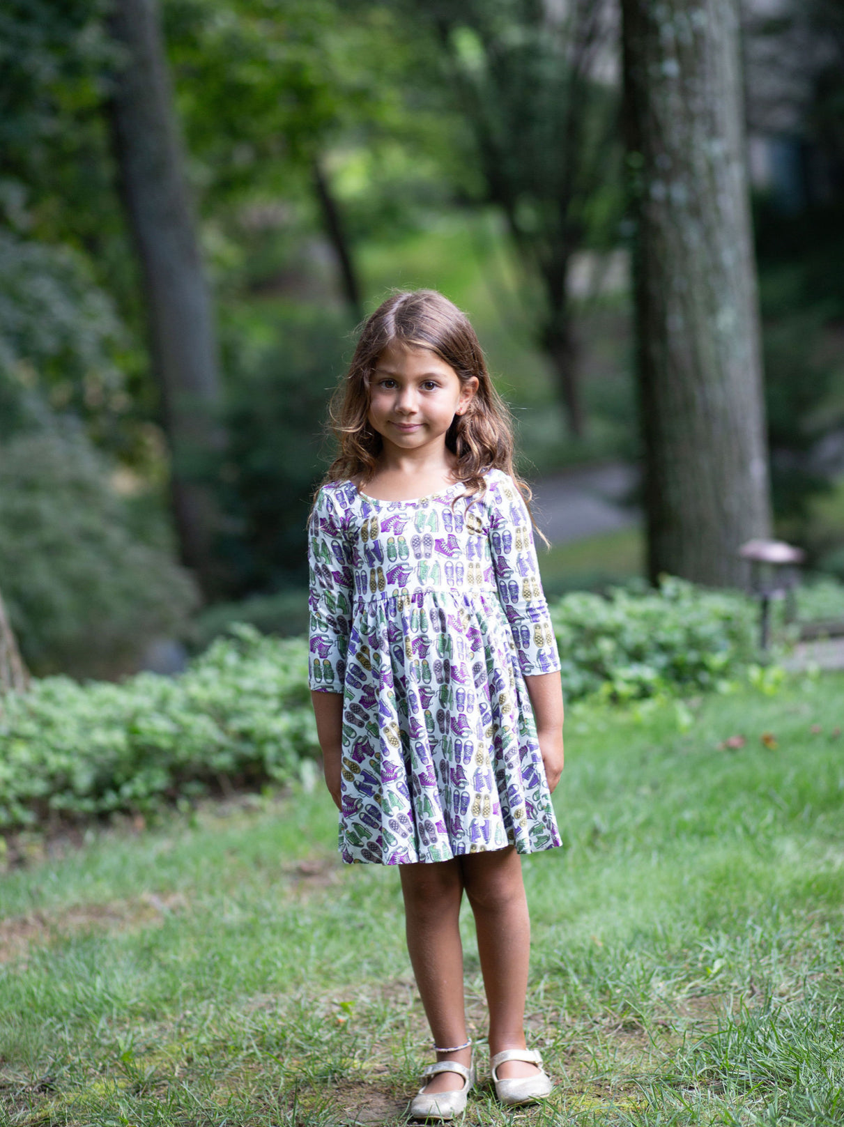 Our best selling design is a girls knit dress with a scooped back and the perfect amount of twirl! Perfect twirly dress for Back to School