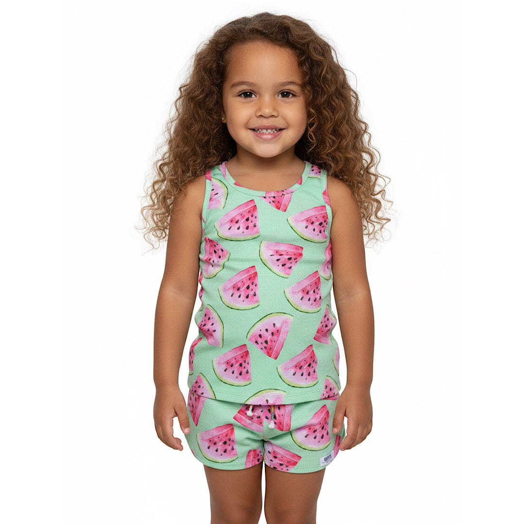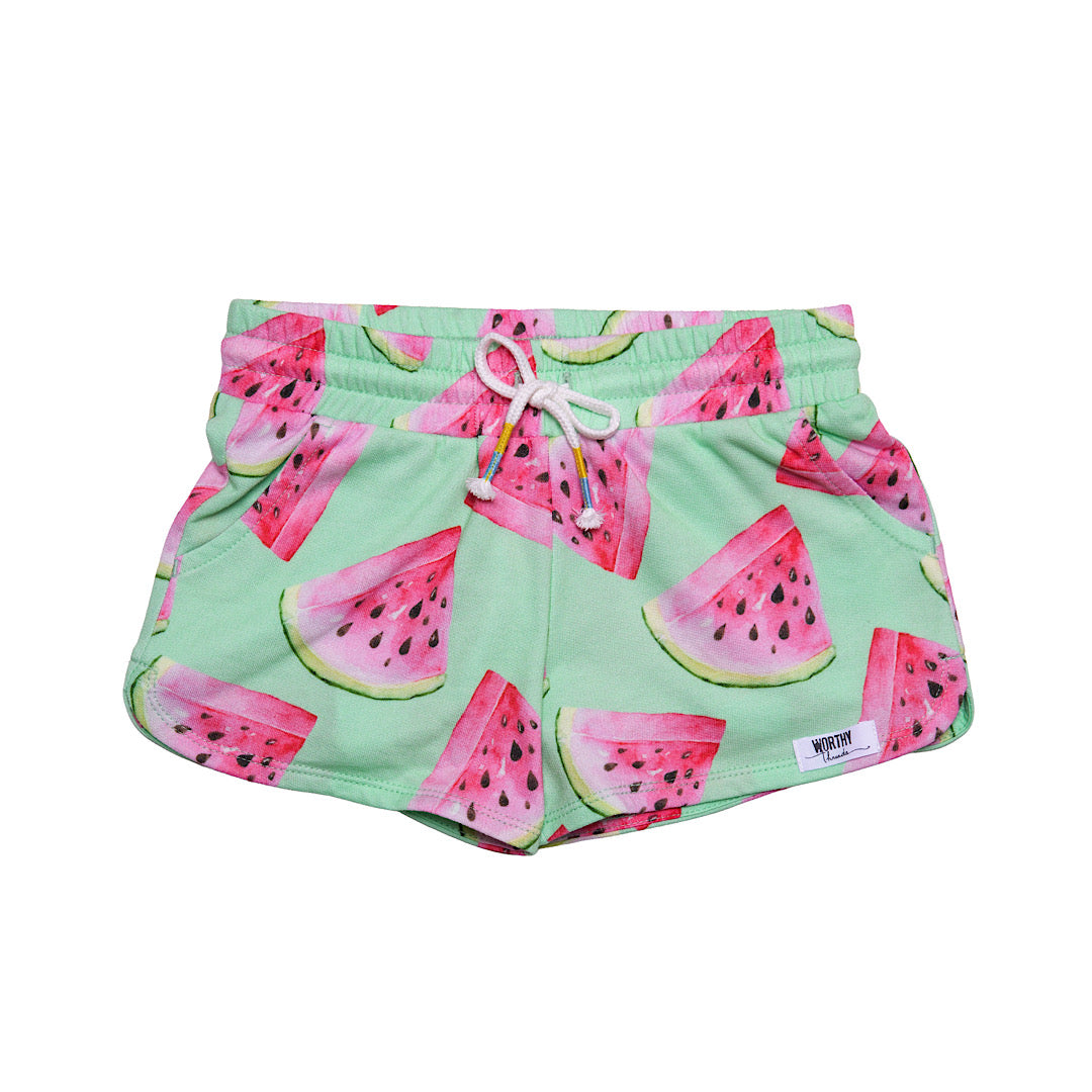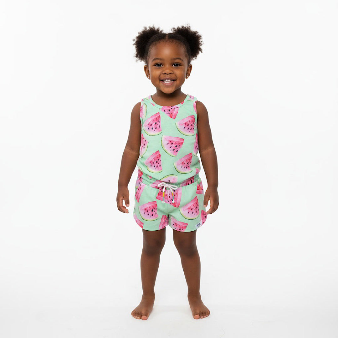 Our newest kids style is a cropped crew neck sweatshirt in navy with magenta stripes...