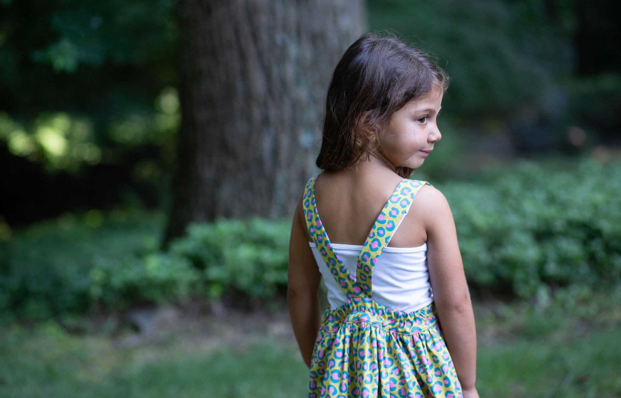 Our signature style in a new funky print - Ramen! The girls pinafore dress is...