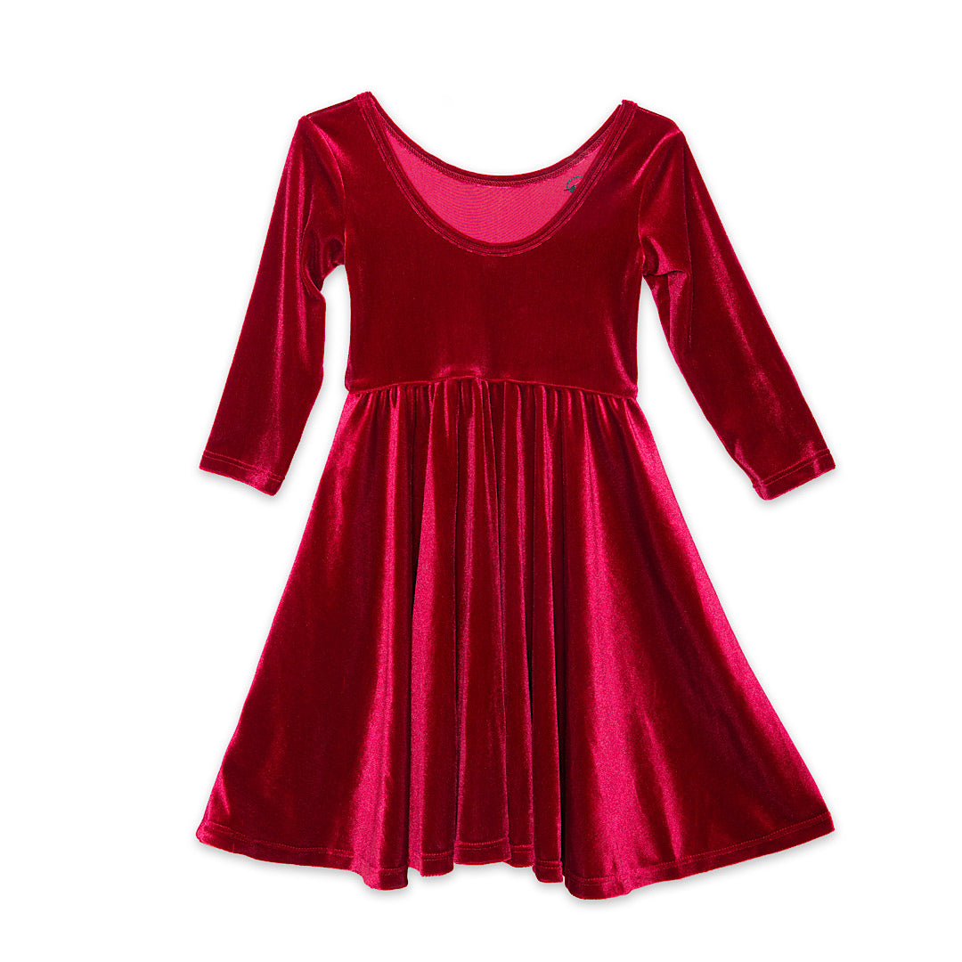 Merry Merry!  Our Christmas twirly dress is perfect for family gatherings and pictures with Santa.  The stretch burgundy velvet dress has Merry embroidered on the neckline.